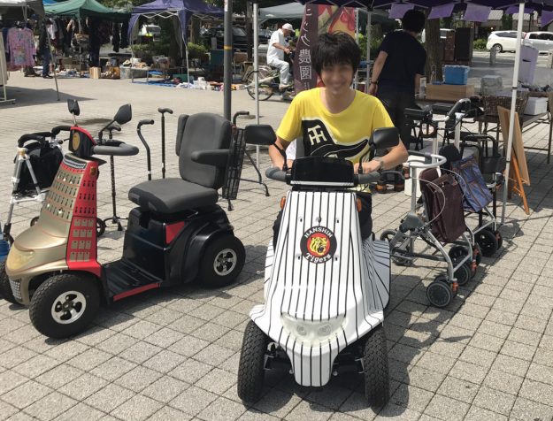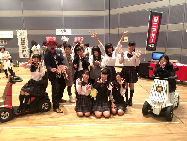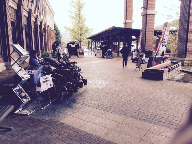 本来なら、エントランス前の広場で乗っていただく予定でしたが、あいにくの雨でエントランス内での試乗となりましたが、シニアカーを少しでも多くの方に知って頂ける良い機会でした。