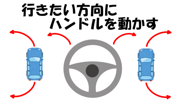 ハンドルを右に回した時 → 車はお尻から右方向に動く