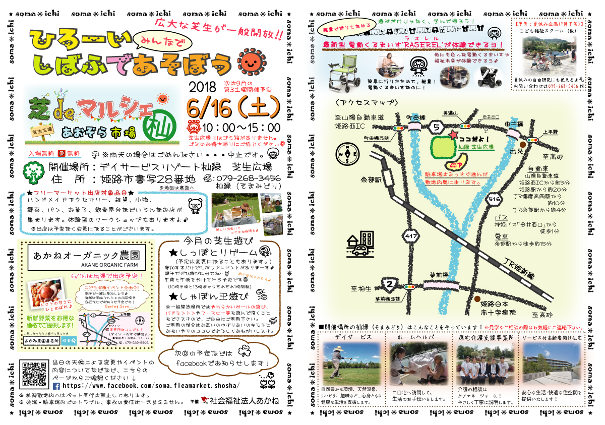 来月6月16日(土)にデイサービスリゾート「杣緑」の芝生広場にて行われる”芝deマルシェ”へ参加予定となりました! 4月21日に芝生がなくなってしまったことにより、再度リベンジ的なイベントのようです(^^) 当日は、スー…