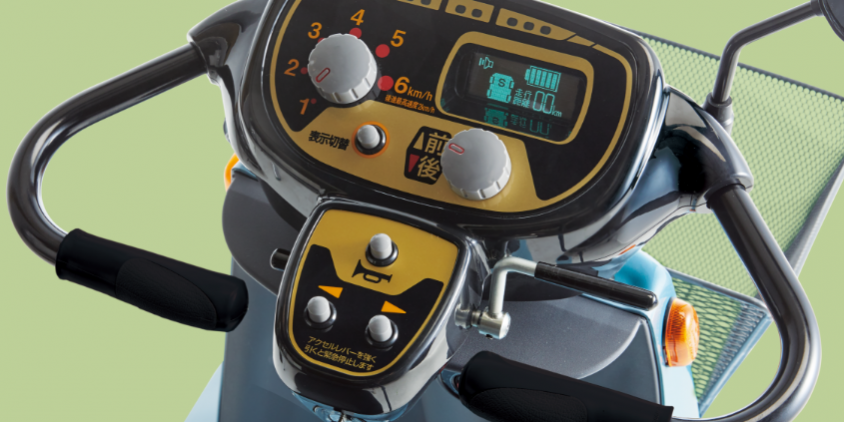 操作盤に新たにデジタル表示機能が追加され、バッテリーの残量や走行距離が一目でわかるようになりました。さらに音声でのガイド機能も搭載され、右左折や後退時、誤操作時にも音声で教えてくれます。